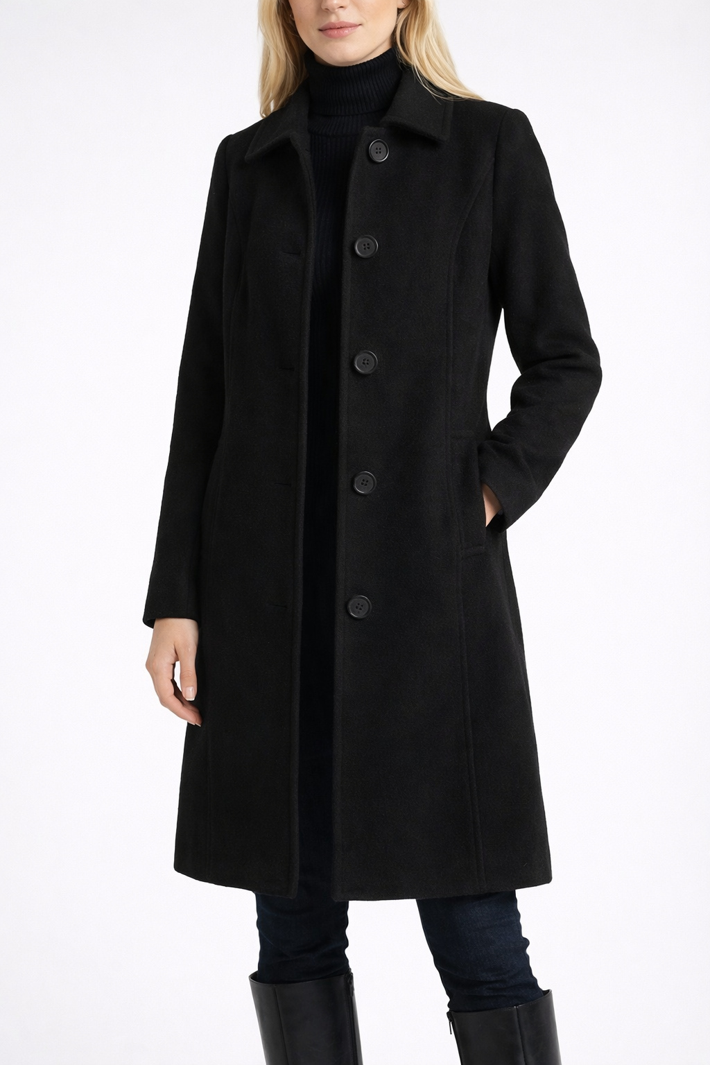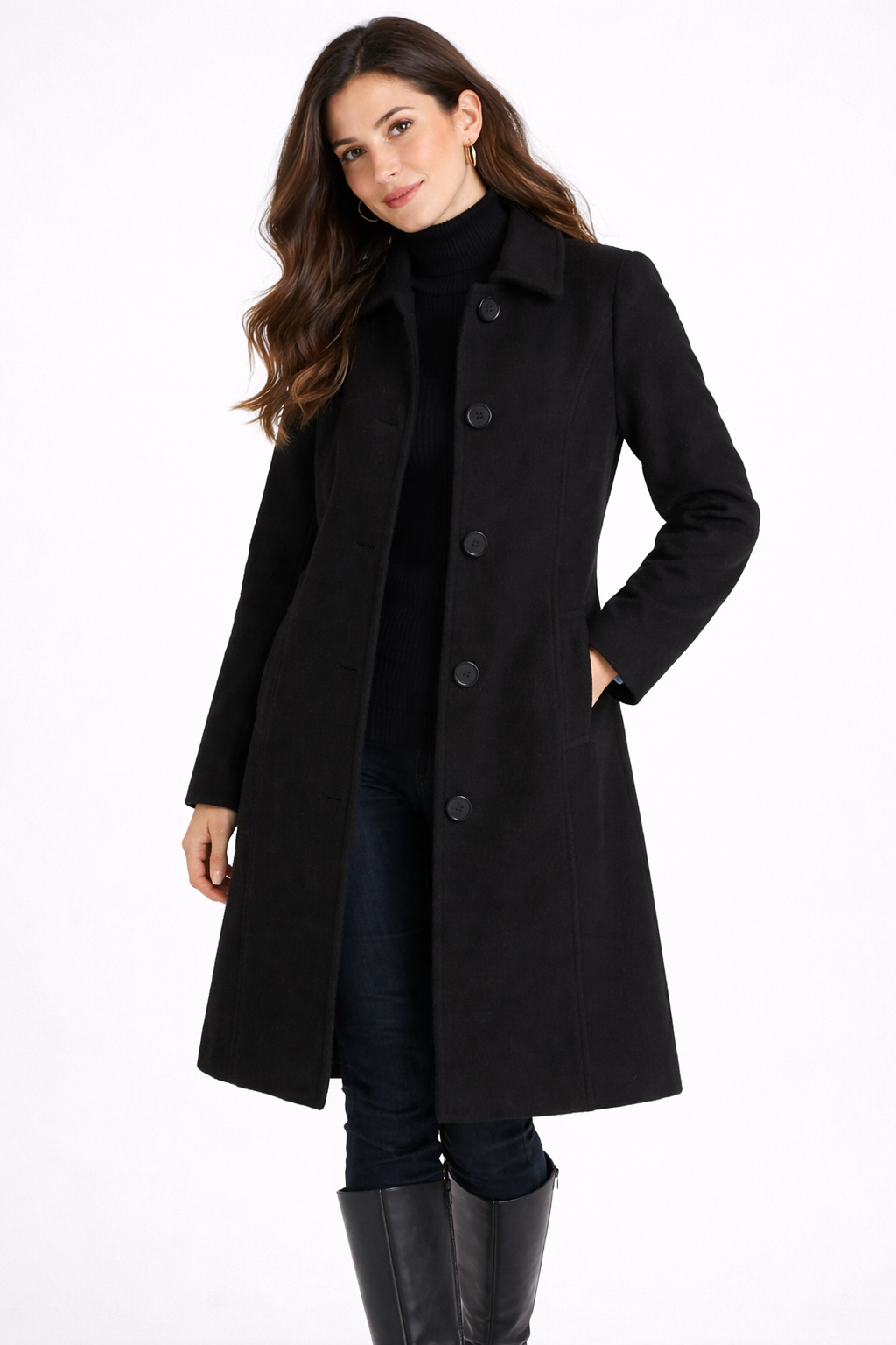 Este es el abrigo que define tu estilo invernal. Esa pieza atemporal que combina silueta favorecedora con elegancia sin esfuerzo. Con su corte ligeramente entallado, línea A femenina y cierre minimalista, este abrigo es tu inversión inteligente para los días fríos donde el abrigo y la clase van de la mano.
